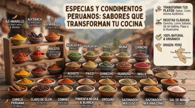 Especias y condimentos peruanos: sabores que transforman tu cocinaDescubre las especias y condimentos peruanos que hacen única a nuestra gastronomía: ají amarillo, ají panca, rocoto, huacatay, chincho, muña y palillo. Origen, perfiles de sabor, usos y beneficios para la salud.