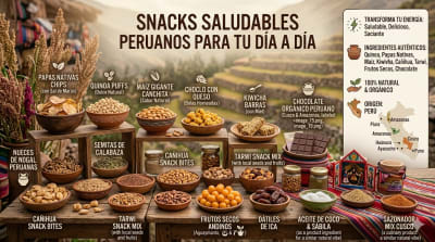 Snacks saludables peruanos para tu día a díaDescubre los snacks saludables peruanos que combinan tradición y nutrición: habas tostadas, cancha serrana, chifles, kiwicha pop, cacao nibs, aguaymanto deshidratado y charqui. Alternativas naturales a los snacks industriales.