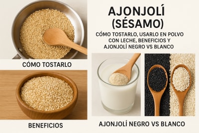 Ajonjolí (sésamo): cómo tostarlo, usarlo en polvo con leche, beneficios y ajonjolí negro vs blancoCómo tostar y moler ajonjolí para bebidas, cuánto usar por taza, qué aporta realmente (calcio, grasas, lignanos), cómo reducir antinutrientes y cuándo elegir blanco vs negro.