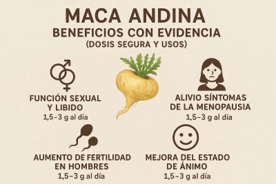 Maca andina: beneficios con evidencia (dosis segura y usos)Qué beneficios de la maca tienen evidencia, cómo tomarla (1.5–3 g/d), diferencias entre gelatinizada y cruda, colores y precauciones. Guía clara para aprovecharla con sentido.