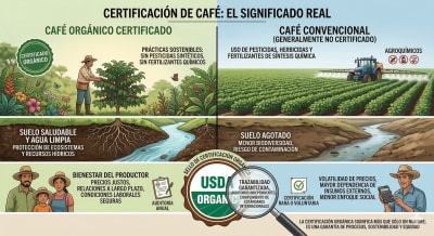 Café orgánico vs convencional: qué significa realmente la certificación¿El café orgánico es mejor? Exploramos qué implica la certificación orgánica, sus beneficios reales, diferencias en sabor y por qué importa para el productor peruano.